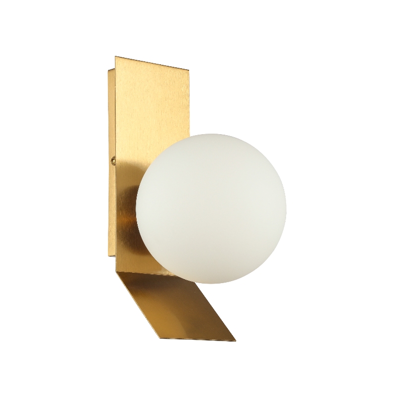 For those who crave contemporary design with an edge, this angular wall light is the perfect choice. Its sharp, geometric brass backplate features a dynamic cutaway, providing a bold contrast to the smooth, luminous opal glass sphere. This piece is a conversation starter, ideal for adding a touch of avant-garde style to a minimalist living room or office.