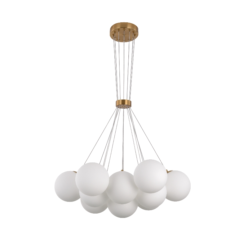 Big Modern Opal Glass Brass Finish Cluster Chandelier