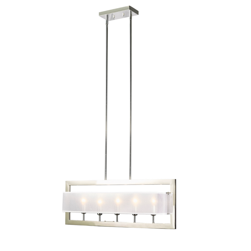 With its timeless linear design and delicate organza shade, this chandelier is ideal for a variety of spaces in your home or commercial establishment. Perfect for kitchen islands, dining rooms, living rooms, foyers, entryways, hallways, boutique hotels, or restaurant areas, it enhances the refined, tranquil aesthetic of any interior.
