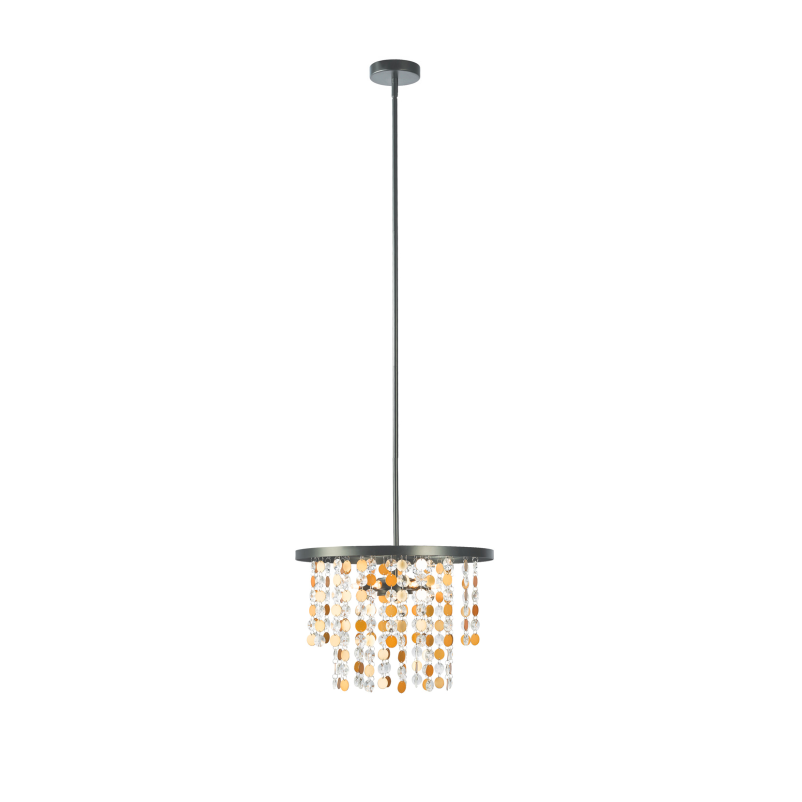 When illuminated, the light reflects beautifully off the faceted crystal beads and shimmering metallic discs, casting a brilliant, sparkling glow throughout your room. The layered design generates a wonderful light effect that catches everyone’s eye and instantly becomes the focal point of your space, elevating the overall aesthetic with its opulent sparkle.